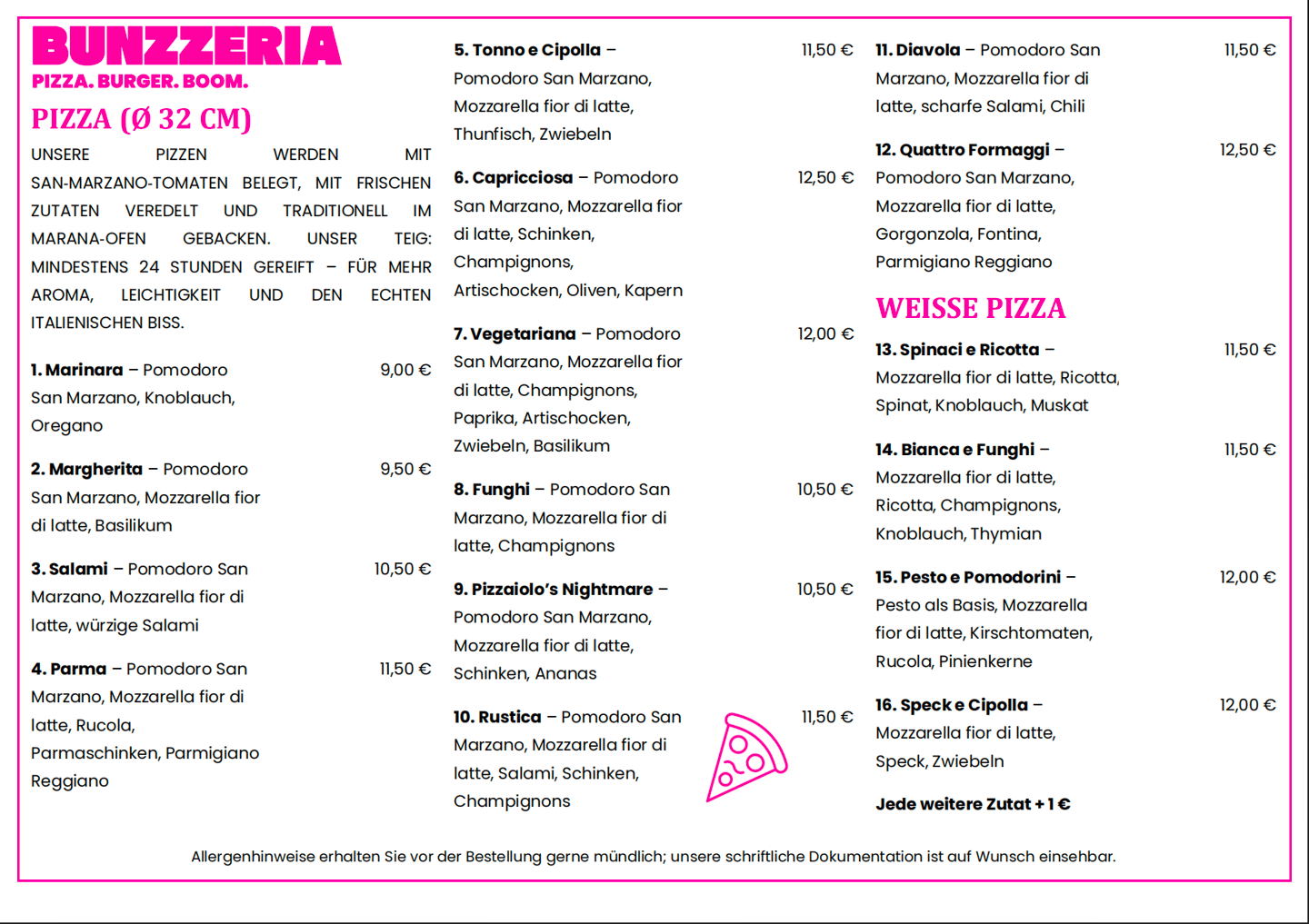 Bunzzeria – Neapolitanische Pizza nach Traditioneller Art aus dem Marana-Ofen & Premium Smashburger. Zwei Leidenschaften, ein Versprechen: Qualität ohne Kompromisse.